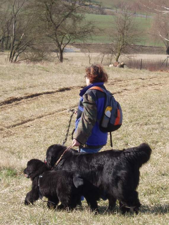 Snad zklamáním z toho, že nedošlo k sežrání lehkovážného figuranta, se většina pejsků se svými pány odebrala zpět ke srubu se stoly, které se prohýbaly pod tíhou dobrot z různých koutů země. Přivezli je sem chovatelé z Novofundland klubu ČR, kteří přijali pozvání pana Špringla a trávili zde slunečnou poslední březnovou neděli. Na 9:00 byl plánován sraz psovodů amatérů a skutečnost, že Jandovi dorazili již ve čtvrt na deset, potvrzuje důležitost tohoto setkání. Když už se všichni chystali na zahájení výcviku, přinesl Bert Víchovic posádku i s povozem a ti se tak stihli připojit. Putování malebným údolím ranče, ukázalo zaviděníhodnost tohoto prostoru i úprav na něm provedených.